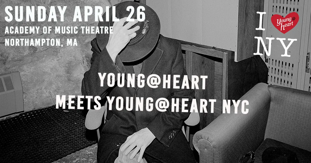 On Sunday, April 26 at 3PM in Northampton, MA, the original Young@Heart Chorus welcomes its newest counterpart, Y@H NYC, to the stage. After 44 years based in Western Massachusetts, Young@Heart has launched its first-ever satellite group in New York City.